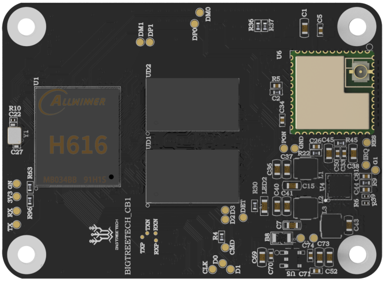 The BIGTREETECH CB1 is launched to provide a great solution to the insane shortage of Raspberry Pi CM4. It outputs signals to the motherboard via the fast and convenient two 100 pins micro BTB connection header. Moreover, it is onboard 2.4G WiFi.