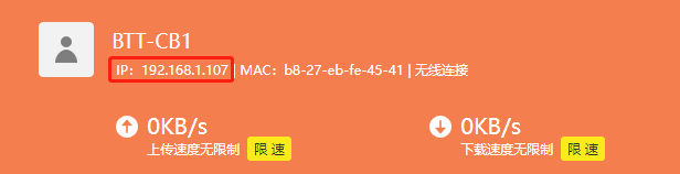 Or use the https://angryip.org/ tool, scan all IP address in the current network organize by names, find the IP named Hurakan, BTT-CB1 like shown below