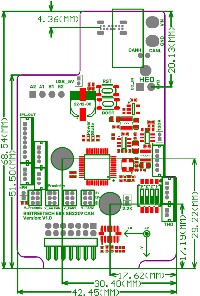 BIGTREETECH EBB SB2240/2209 CAN V1.0 is a tool board for the 3D printing team of Shenzhen BIQU Innovation Technology Co., Ltd. to adapt VoronStealthBurner. It can communicate via USB or CAN, greatly simplifying wiring。