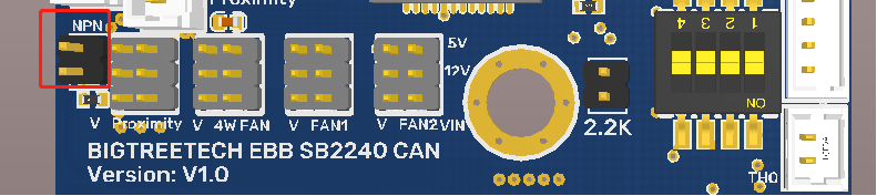 PNPandNPNproximity switches, which is convenient for users to connect different types of proximity switches to the motherboard. The default connection type isPNP. IfNPNtype is needed, just use the jumper cap to short the NPN pin on the motherboard.