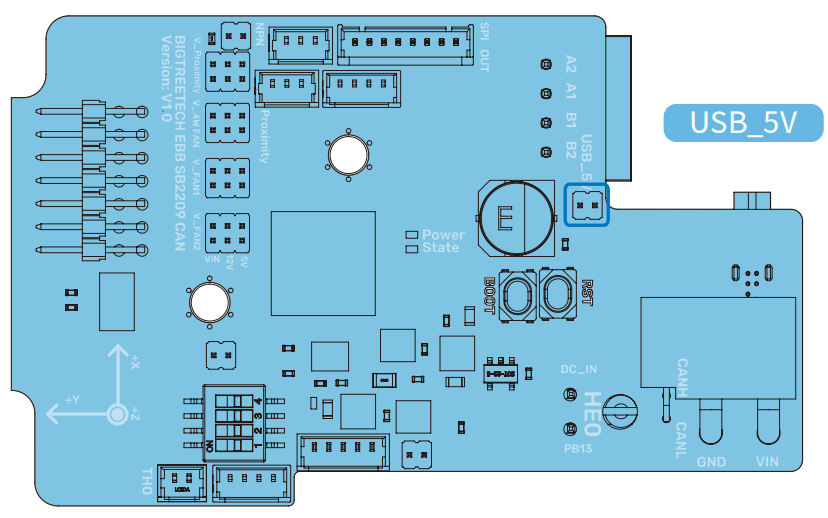 Please use a Type-C cable to connect the EBB SB2240/2209 CAN to the Raspberry Pi/CB1, and ensure that the USB_5V jumper is connected, in order to supply power to the EBB SB2240/2209 CAN via Type-C.