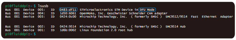 Note: Replace 0483: df11 with the actual device ID found in the previous step.