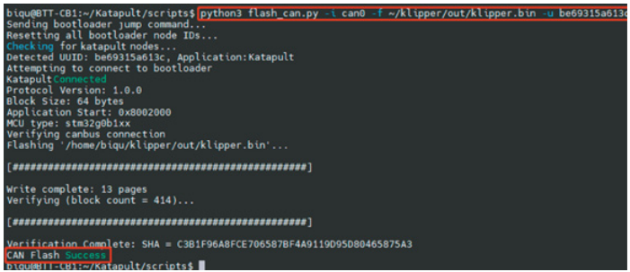 Use command below to flash klipper via Katapult