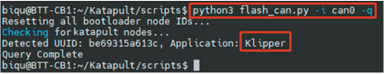 to query. At this time, the Application changes from Katapult to Klipper, indicating that Klipper has been running normally