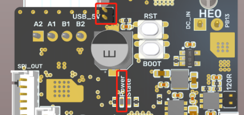 After the main board is powered on, the Power red light will light up, indicating that the power supply is normal. The VUSB in the middle of the board is the power selection end. Only when USB is used to power the main board, it is necessary to use the jump cap to short connect the VUSB. Main board does not support external power supply through TYPE C.