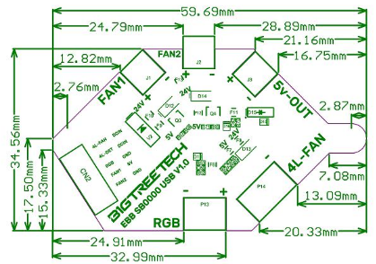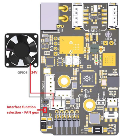 Note: The 2-pin fan interface defaults to 24V output at the factory. You will need to manually solder the fuse to the 5V side if they want to use 5V.