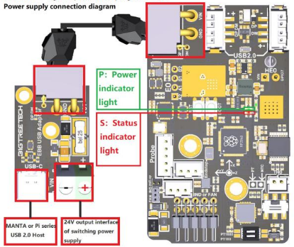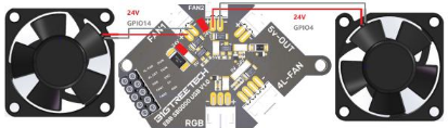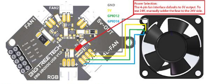 Note: The 4-pin fan interface defaults to 5V output at the factory. You will need to manually solder the fuse to the 24V side if you want to use 24V.