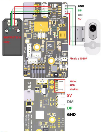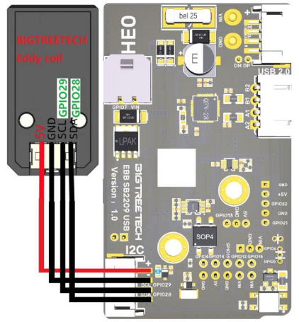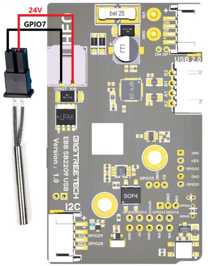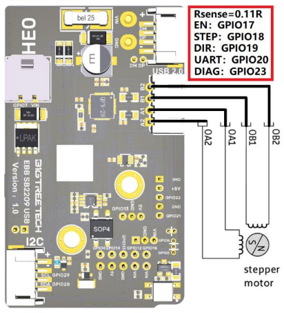 1、Use the adapter board to connect the BIGTREETECH EBB SB2209 USB V1.0 to Raspberry Pi/CB1, and ensure the power cable is also connected.