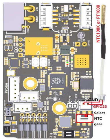 2. The pull-up resistance value is 2.2K. When debugging the firmware, be careful not to incorrectly write it as 4.7K, as this can cause inaccurate temperature readings.