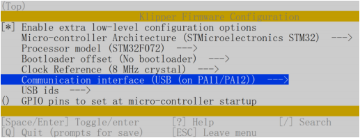 Compile the firmware with the following configuration (if the following options are not available, please update the Klipper firmware source to the latest version).