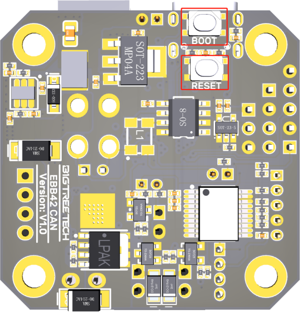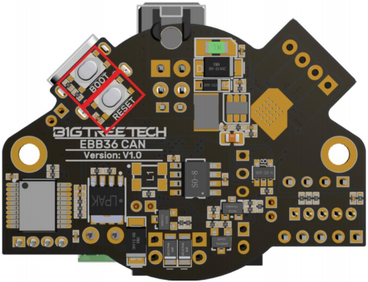 PA2 is used for the hotend MOSFET in EBB36 CAN V1.1 and EBB42 CAN V1.1,The high level in the DFU mode change the hotend into heating state. Therefore, please pay attention to disconnect the main power VIN of the hotend when using the DFU of Type-C port to update the firmware, or ensure that the firmware update is completed soon and goto the normal working mode. Never keep MCU in DFU mode for a long time when the main power supply and hotend are connected.
