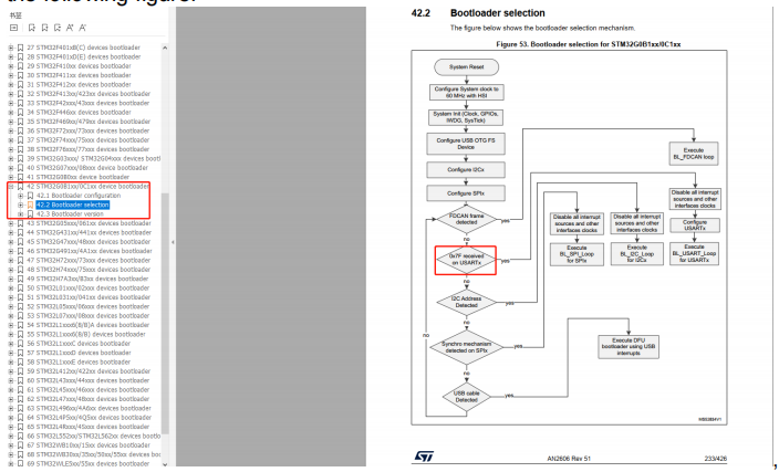 (https://www.st.com/content/ccc/resource/technical/document/application_note/b9/9b/16/3a/12/1e/40/0c/CD00167594.pdf/files/CD00167594.pdf/jcr:content/translations/en.CD00167594.pdf), The initialization process of this bootloader is shown in the following figure: