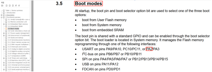 Warning:STM32G0B1CB needs to jump to the System memory area to runbootloader (written by STMicroelectronics) when using DFU to update firmware through the Type-C port. Referring to the description in manual AN2606
