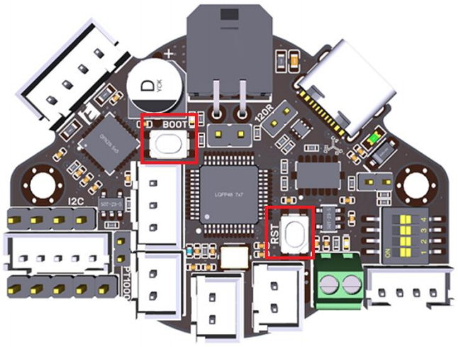 2.Press and hold the Boot button, then click the RST button to enter DFU mode.
