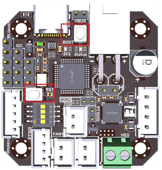 - Please pay attention to the precautions in 4.2 Firmware Update to avoid keeping MCU in DFU mode for a long time when the main power supply and hotend are connected.