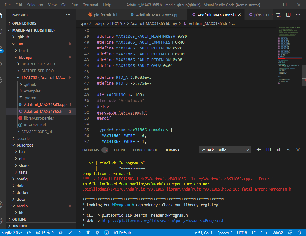 Make the following modifications in the file Adafruit_MAX31865.h Comment out (ARDUINO >= 100) to determine