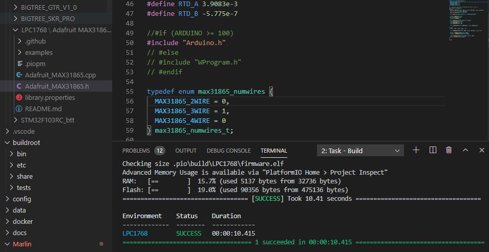 TEMP_SENSOR_0 Set to -5: Use MAX31865 module on heater 0