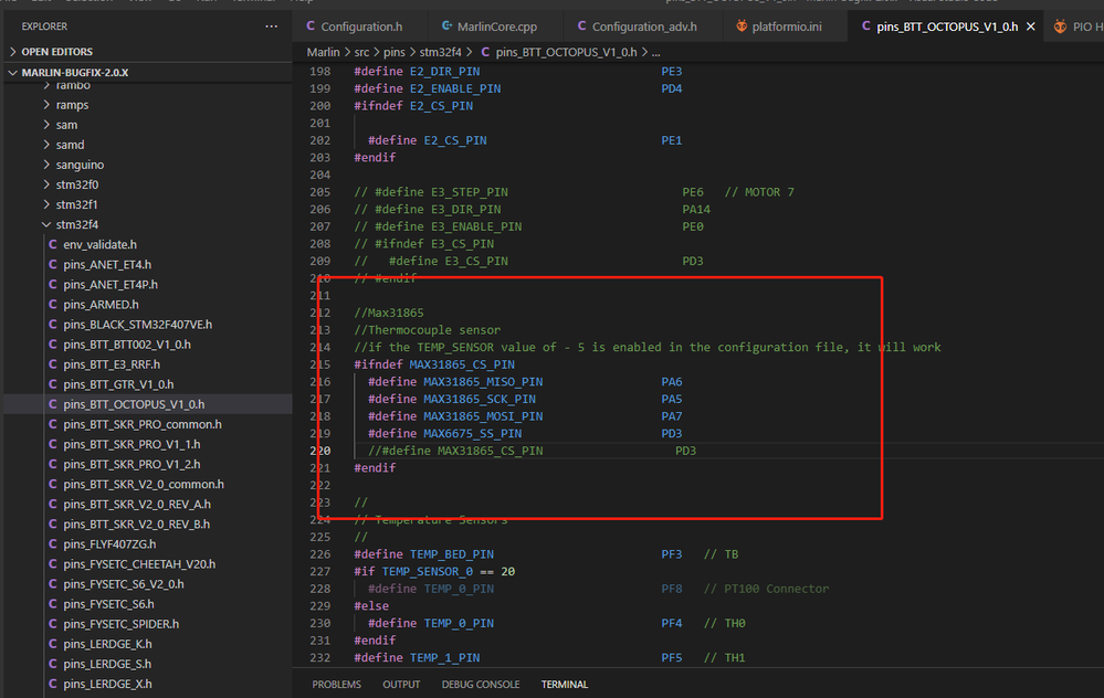 TEMP_SENSOR_1 Set to -5: Use MAX31865 module on heater 1