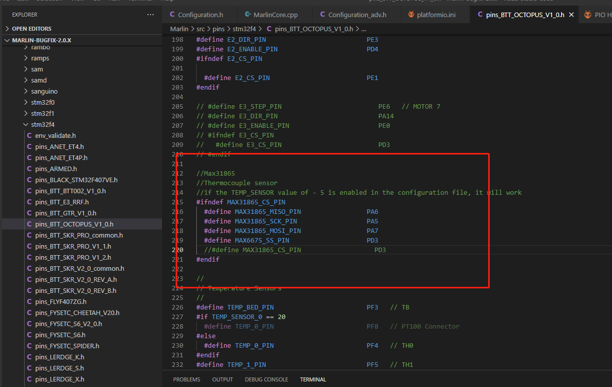 At present, to use this module on marlin, you need to define the MAX31865 chip select as MAX6675_SS_PIN, compile the bin file,and you can use it after updating