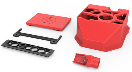 Voron-Exhaust-ETK-without-fan: modified Voron design V2.4 exhaust hood without a 60mm exhaust fan. This is the recommended configuration for non-SFS users as it completely encloses the blower, keeping the noise level to a minimum. For this configuration, no extra parts are needed.