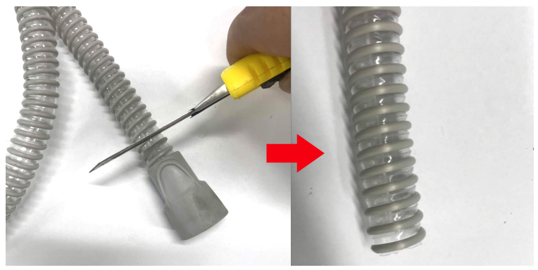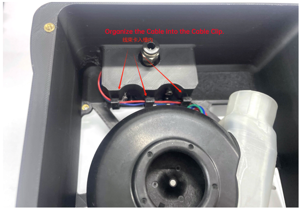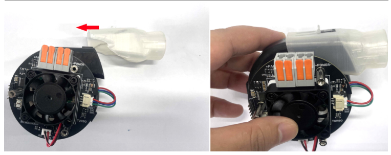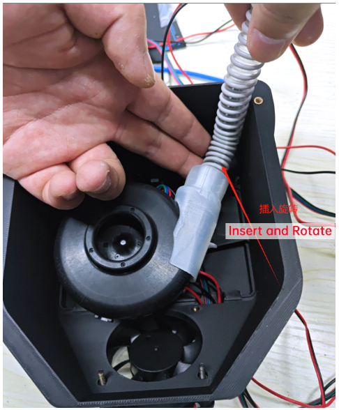 - Install the Pipe and Secure the Ventilation Cover - Pass the pipe through the second hole on the right of the printed ventilation cover.
