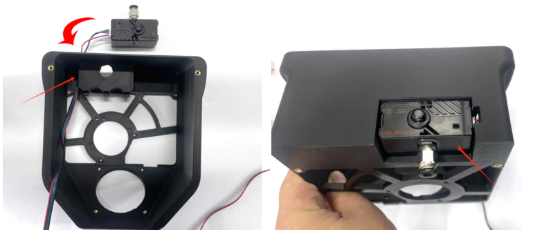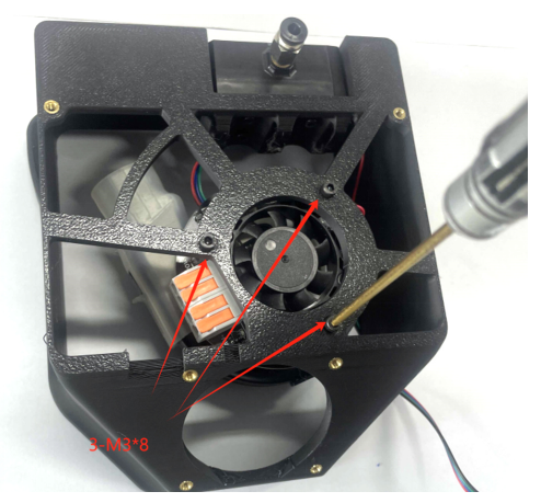- Fasten the case to the blower assembly using three M3x8 screws.