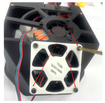 - Use four M3x30 screws to secure the 6020 fan to the case.