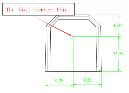 The coil's center point, used for calculating XY offsets, is as follows: