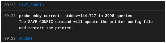 - Click accept and watch as the Eddy performs the mapping. Be sure to send SAVE_CONFIG when it is done.