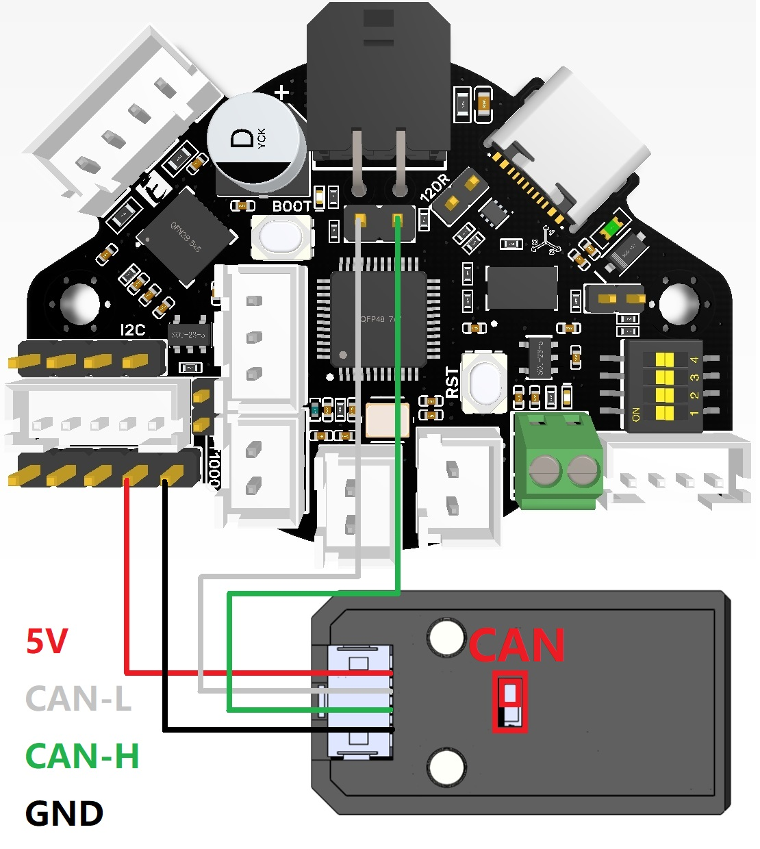 CAN-Bus communication Communication interface (CAN bus) ---> (4) CAN RX gpio number (5) CAN TX gpio number (1000000) CAN bus speed