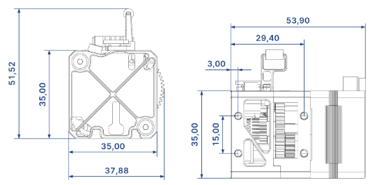 The H2 V2X is an ultra-lightweight (145g) direct drive extruder, crafted from anodized aluminum with CNC precision. It features superior motor heat dissipation, dual-gear extrusion for smooth filament feeding, and versatile mounting options.