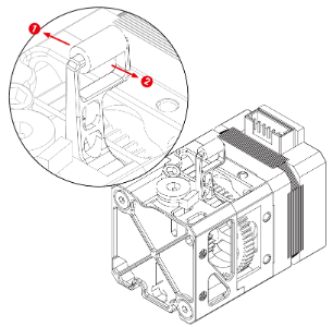 To release the filament, pull the lever towards the position labeled "②" in the diagram below. To lock it, move it to position "①".
