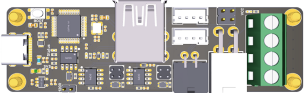 - Offers CAN or USB communication. CAN has a selectable 120R terminal resistor via jumper along with an expansion interface.