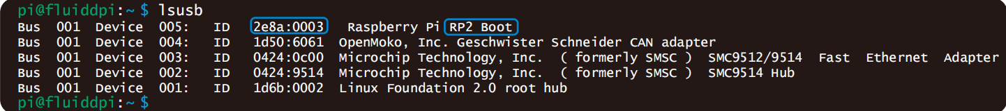 Replace 2e8a:0003 with the actual device ID obtained in the previous step.