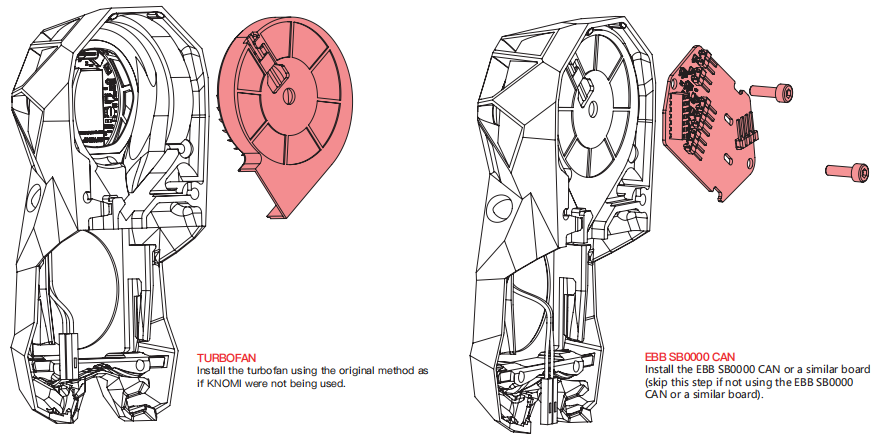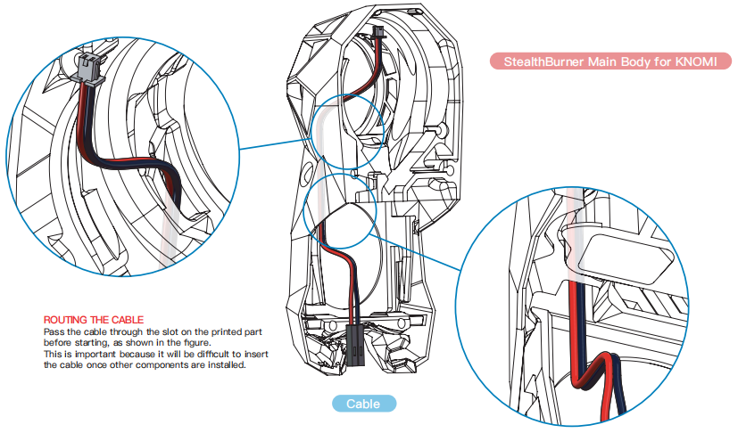 We will offer the customized mounting printed part files for you to effortlessly install KNOMI onto your Voron Stealthburner, in which the StealthBurner main body retains the original fan position and incorporates additional vents on the top for enhanced compatibility and optimized heat dissipation.