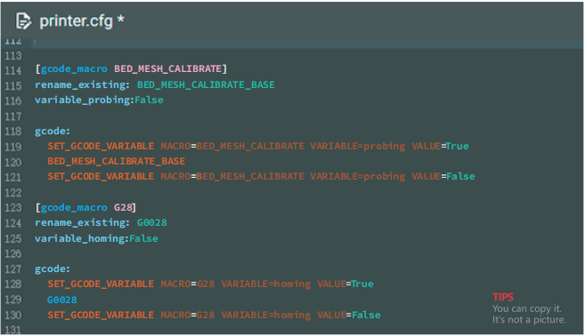 SET_GCODE_VARIABLE MACRO=BED_MESH_CALIBRATE VARIABLE=probing VALUE=True