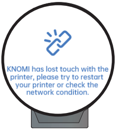 If KNOMI is displaying this interface, it means that KNOMI is disconnected from the printer. This may be caused by the following problems: