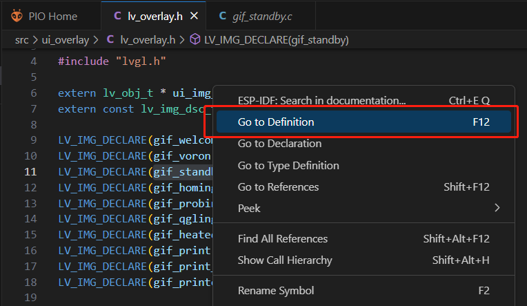 Click bigtreetech/KNOMI/firmware to download the KNOMI1 project. Using Visual Studio Code to open the project and enter lvgl_ Gif.cpp file.