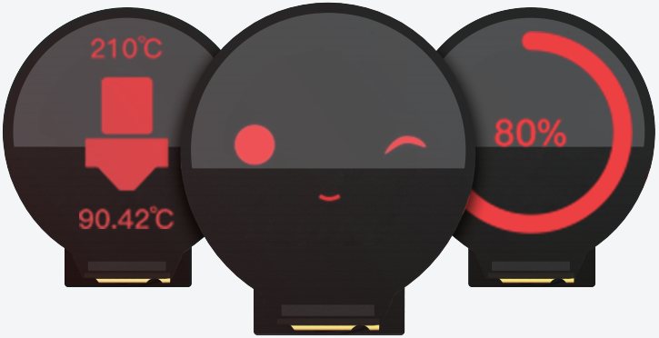 KNOMI is a mini round screen designed specifically for Klipper running 3D printers, offering users a unique and personalized way to monitor their printer's operation. The screen displays important information through KNOMI UI, such as heated bed temperature, nozzle temperature, leveling status, printing progress, etc. KNOMI is an open-source product, allowing users to customize the user interface and design mounting brackets to fit their specific 3D printer.