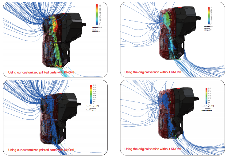 Our performance testing compared airflow velocity and acoustic levels between the standard StealthBurner and the modified KNOMI-equipped version. The results demonstrated equivalent cooling performance and noise output between both configurations, confirming that the KNOMI integration - including its additional ventilation features - maintains the StealthBurner's original operational performance without compromise.