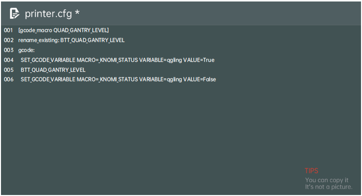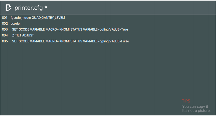 SET_GCODE_VARIABLE MACRO=_KNOMI_STATUS VARIABLE=qgling VALUE=True