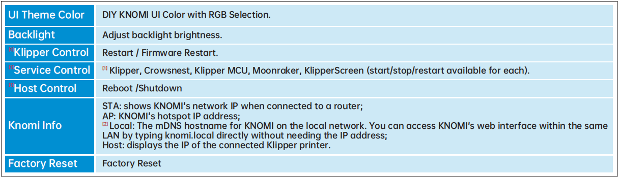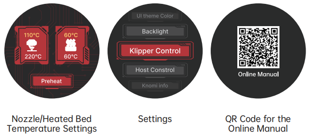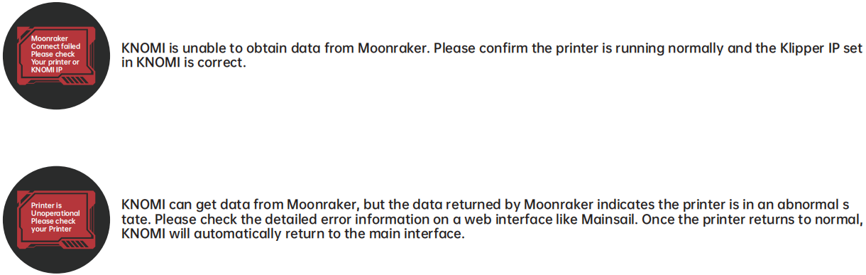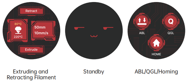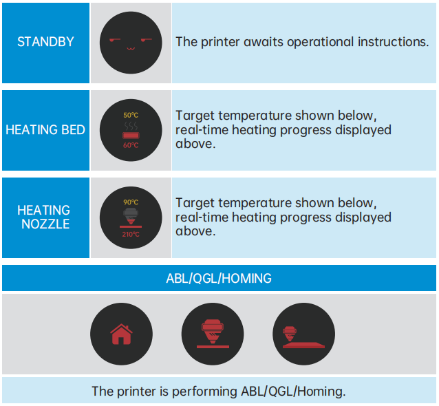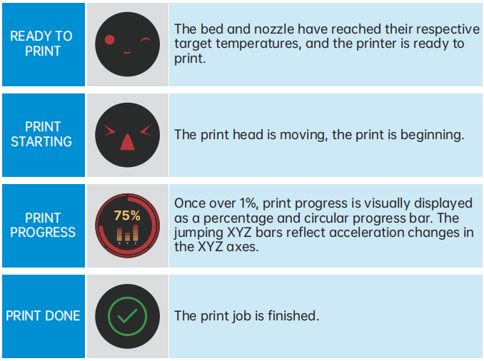 KNOMI UI uses visual elements to provide status information at different stages of printer operation :