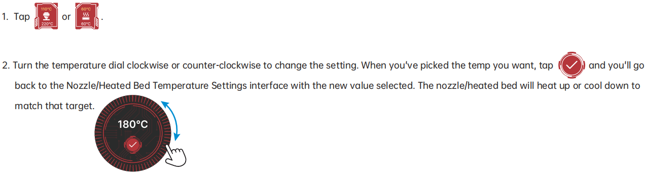 How To Adjust The Temperature Of The Nozzle/bed?¶