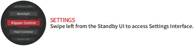KNOMI 2's touchscreen supports swipe gestures (up/down/left/right) for navigation and long presses for selections.