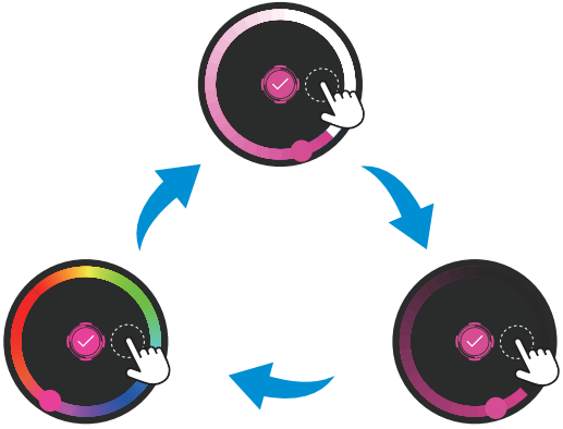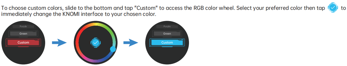 You can further customize the saturation and brightness: After choosing a color from the wheel, long-press the outer black area to cycle through saturation adjustment, brightness adjustment, and return to the RGB color wheel.