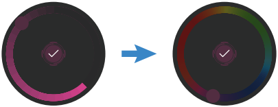 Your selected saturation/brightness settings remain applied when you return to the RGB color wheel.