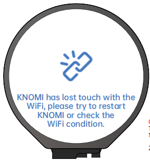 This status on KNOMI 2 indicates it has lost connection to the WiFi hotspot. Potential causes: