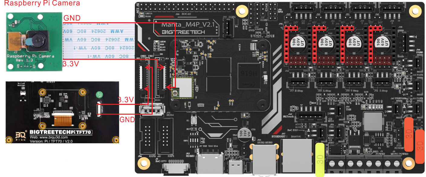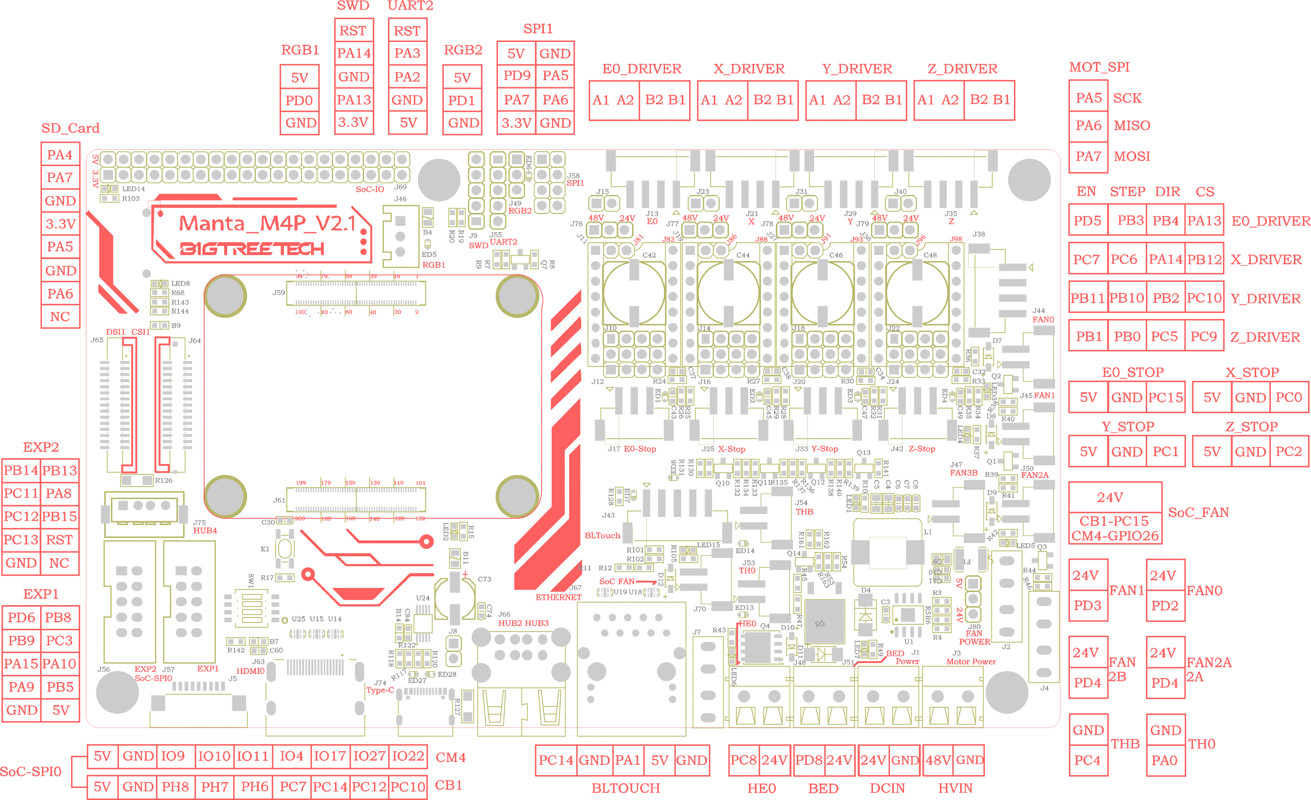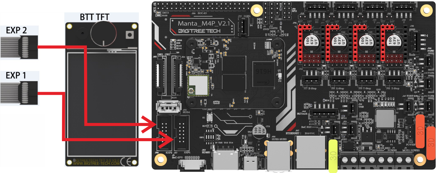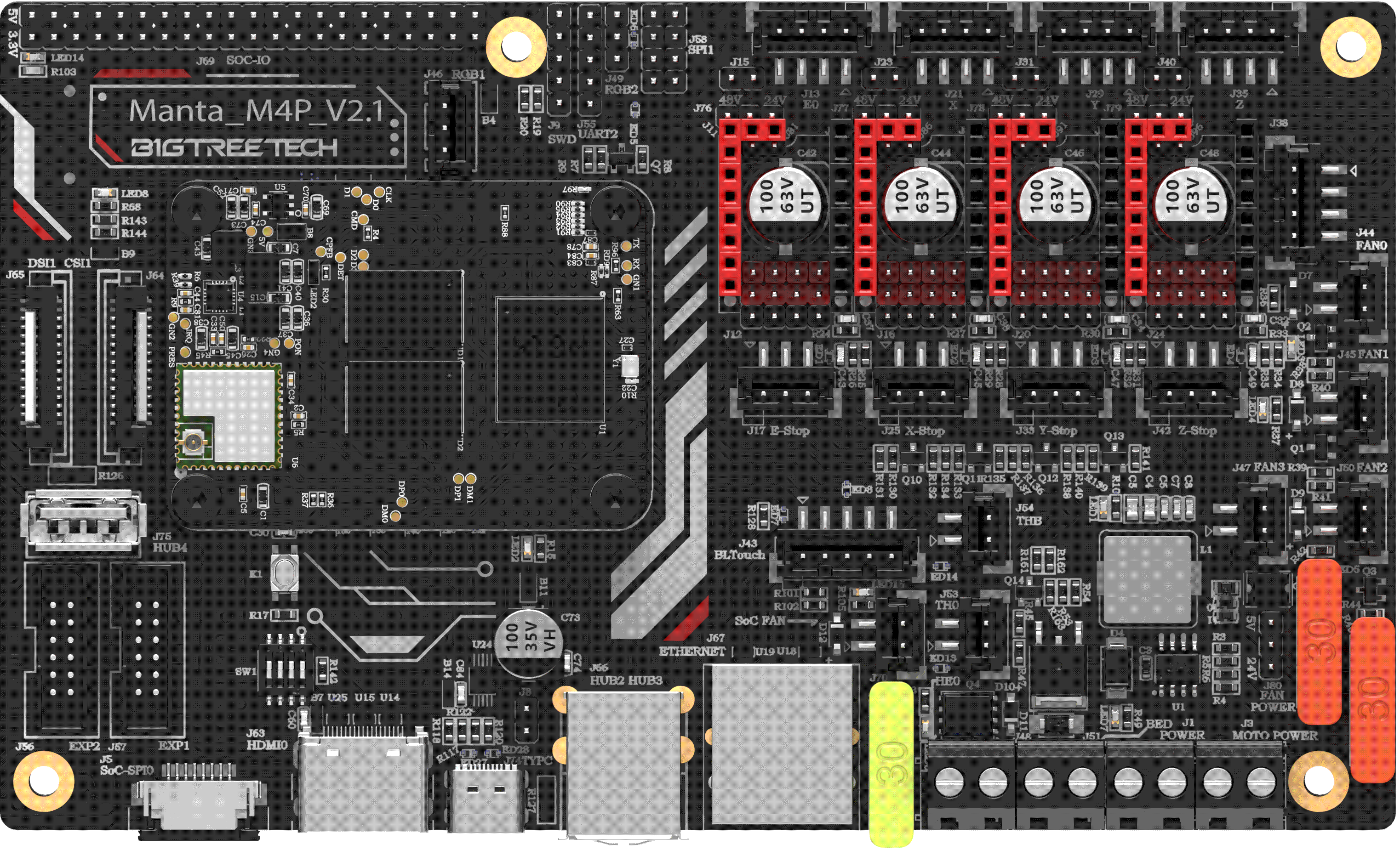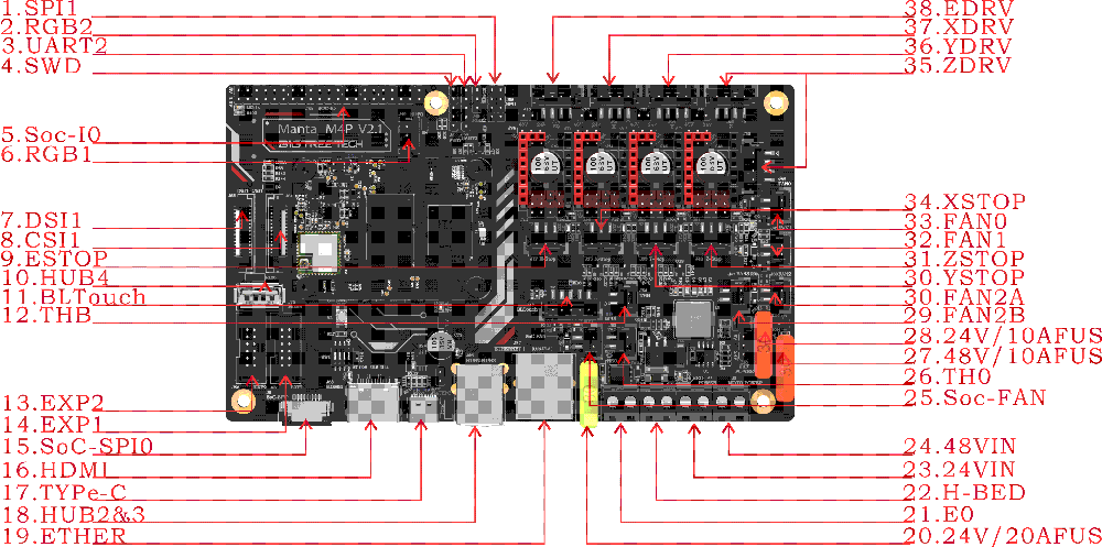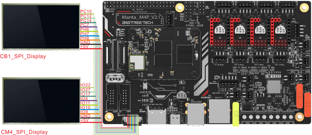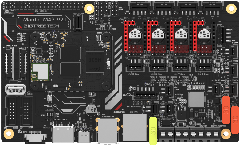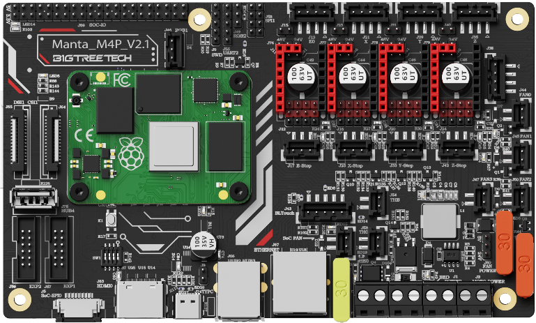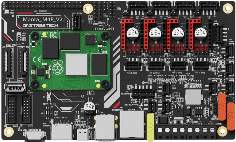 BIGTREETECH M4P is a 4-axis motherboard using a CM4 BTB header, which can work with CB1 or CM4 perfectly.