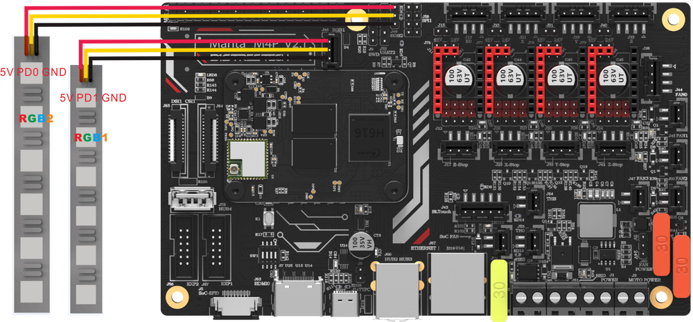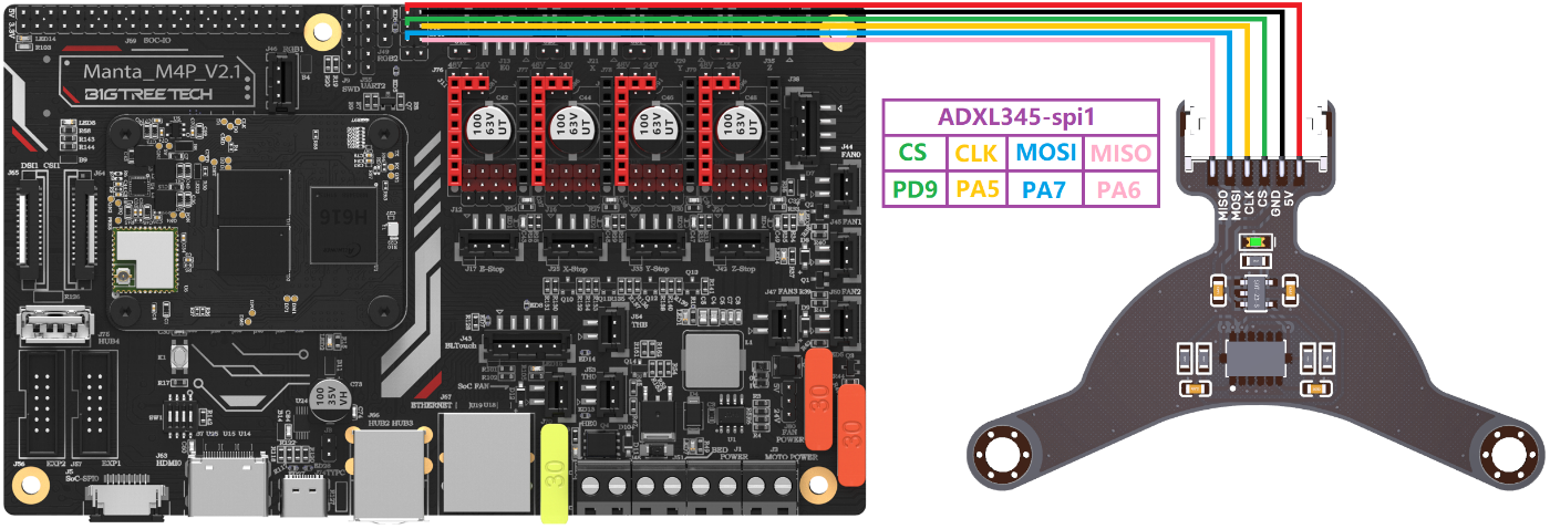 Refer to here: https://www.klipper3d.org/Measuring_Resonances.html, We can refer to the following wiring and configuration when connecting to the M4P motherboard