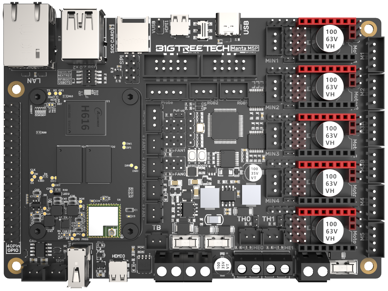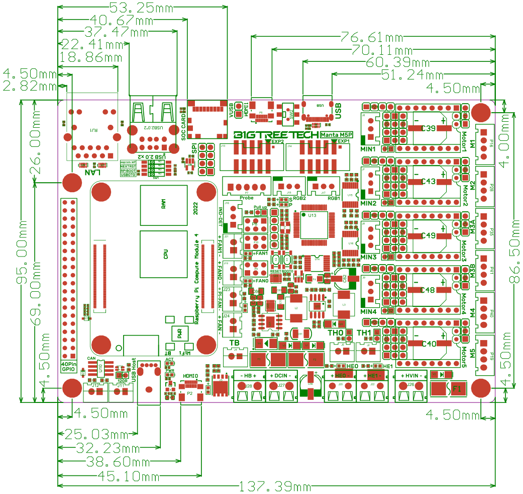 | Dimensions | 137.5mm x 95mm, for details please refer to BIGTREETECH MANTA M5P V1.0-SIZE-top.pdf |